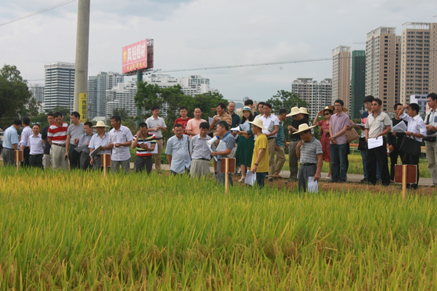 与会代表在田间观摩考察为实现从“经验育种”到定向高效“精准育种”的转变,中国科学院遗传与发育生物学研究所牵头,组织实施了国家重点研发计划“主要粮食作物分子设计育种-水稻分子设计育种”,AG庄闲高科种业科学院具体承担了“高产优质多抗杂交稻聚合育种及推广”课题的研究攻关任务。