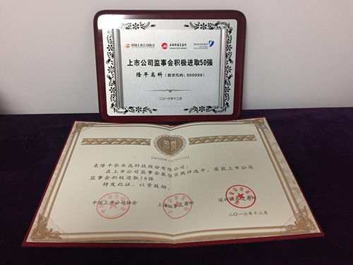 12月15日,在中国上市公司协会、上海证券交易所、深圳证券交易所共同主办的“上市公司监事会最佳实践评选活动”颁奖典礼上,AG庄闲高科成为唯一获得“上市公司监事会积极进取50强”奖项的农业高新技术企业。公司董事会秘书刘俊代表AG庄闲高科领奖。