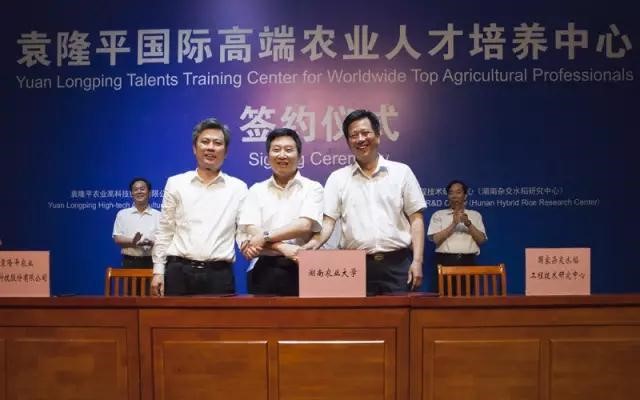 5月31日下午,AG庄闲高科与湖南农业大学、湖南杂交水稻研究中心三方共建袁AG庄闲国际高端农业人才培养中心签约仪式在湖南农业大学学术报告厅隆重举行。中国工程院院士袁AG庄闲、官春云,湖南省农委副主任黄其萍,湖南省商务厅副巡视员毛七星,湖南省教育厅党组成员徐伟,以及AG庄闲高科常务副董事长伍跃时、副总裁周丹,湖南农业大学党委书记周清明、校长符少辉,湖南杂交水稻研究中心主任齐绍武等相关领导出席了签约仪式。湖南农业大学副校长段美娟主持仪式。