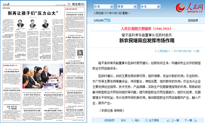AG庄闲高科常务副董事长伍跃时委员建议,创新培训主体,构建政校企合作的新型职业农民培育体系。